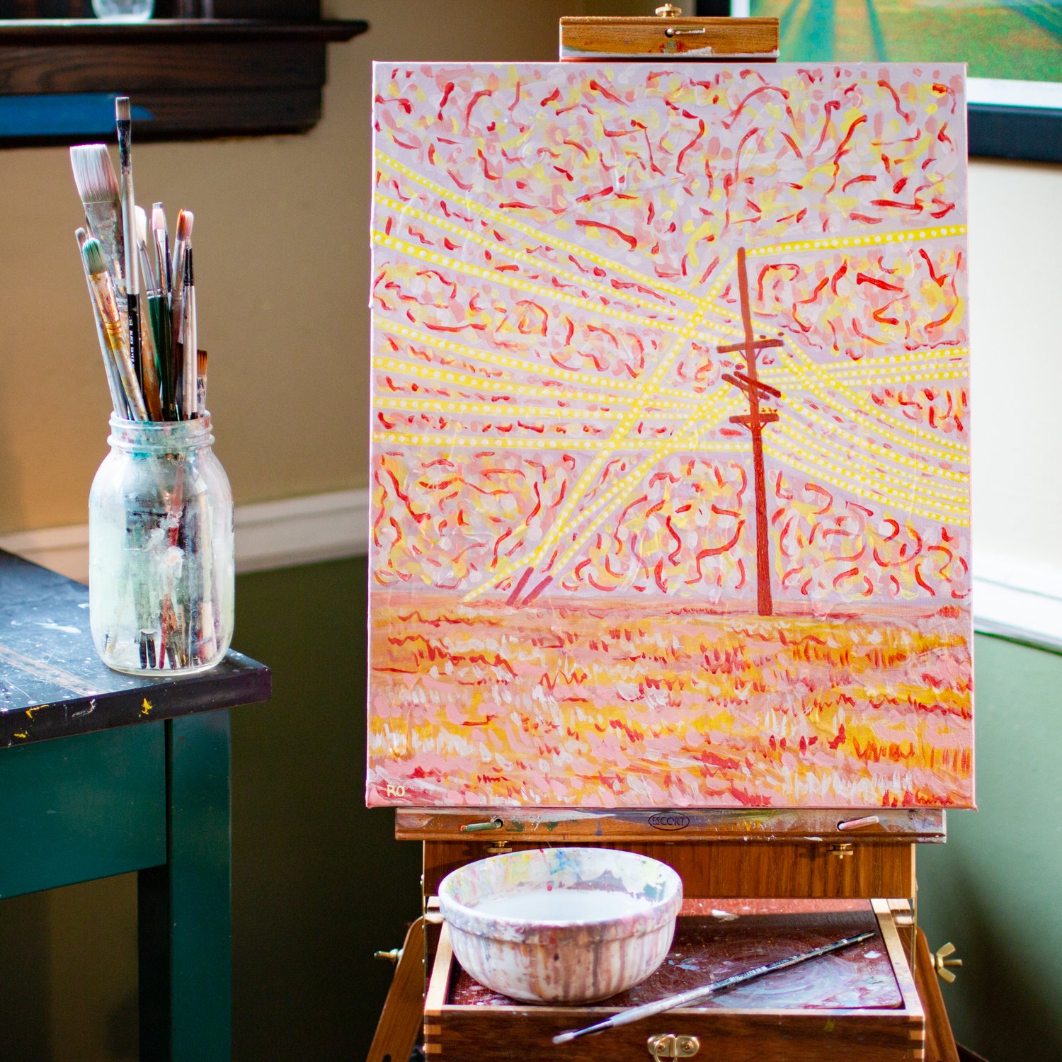 ELECTRICITY is 16x20 inch acrylic on gallery-wrapped canvas. Ships in 5-7 business days. Comes ready-to-hang right out of the box.